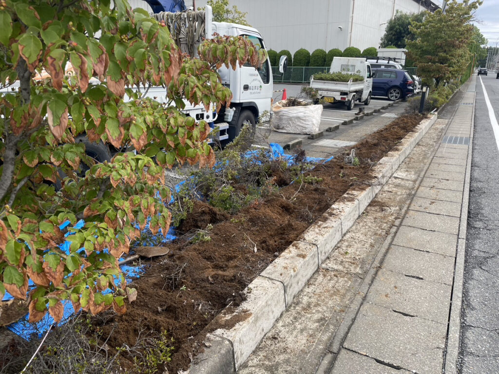 群馬県高崎市のF様より、道路沿いの植栽スペースの整備をご依頼いただきました。