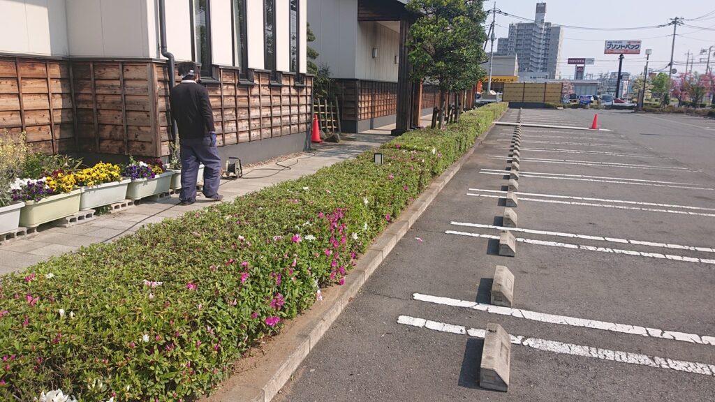 また、道路沿いや店舗・施設など人の出入りがある場所では、通行導線や近隣への配慮を徹底。必要に応じて高所作業車を使用し、安全第一で作業しています。
