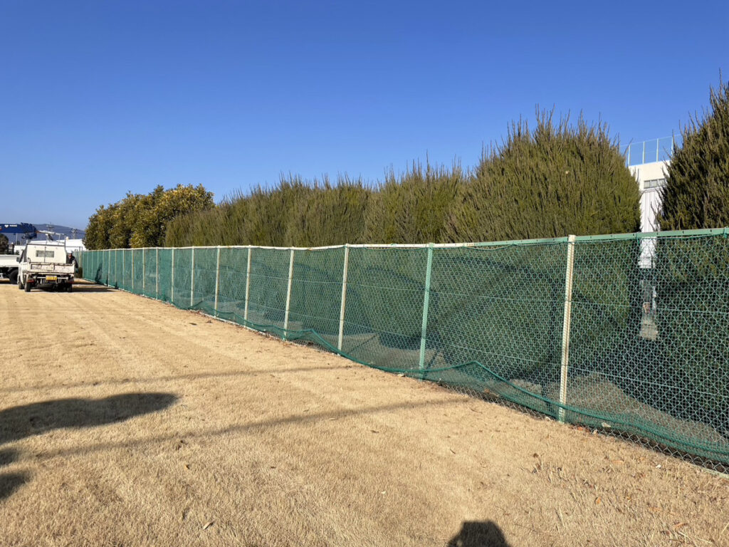 今回は敷地沿いに長く続く生垣の剪定・緑地管理のご依頼でした。遠目から見た際に「ラインが綺麗に見えること」を重視し、高さと奥行きのバランスを揃えながら全体を整えました。