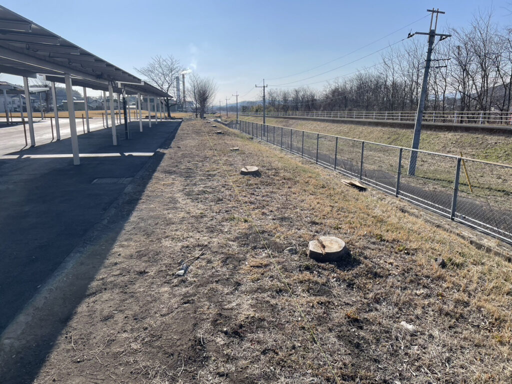 今回の施工場所は、駐車場沿いの細長い植栽スペースです。