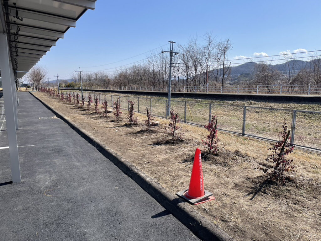 既存の環境や見え方のバランスを確認しながら、列を整えて一本ずつ丁寧に植え込みを進めました。