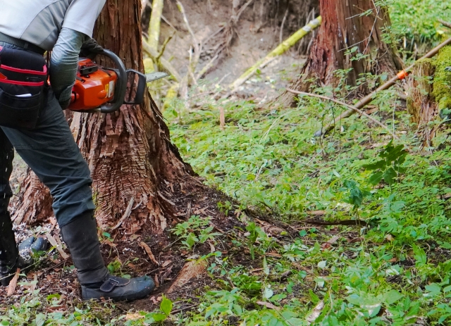 造園作業で特にリスクが高いのが、高所作業と刃物(チェーンソー・刈払機など)の作業です。